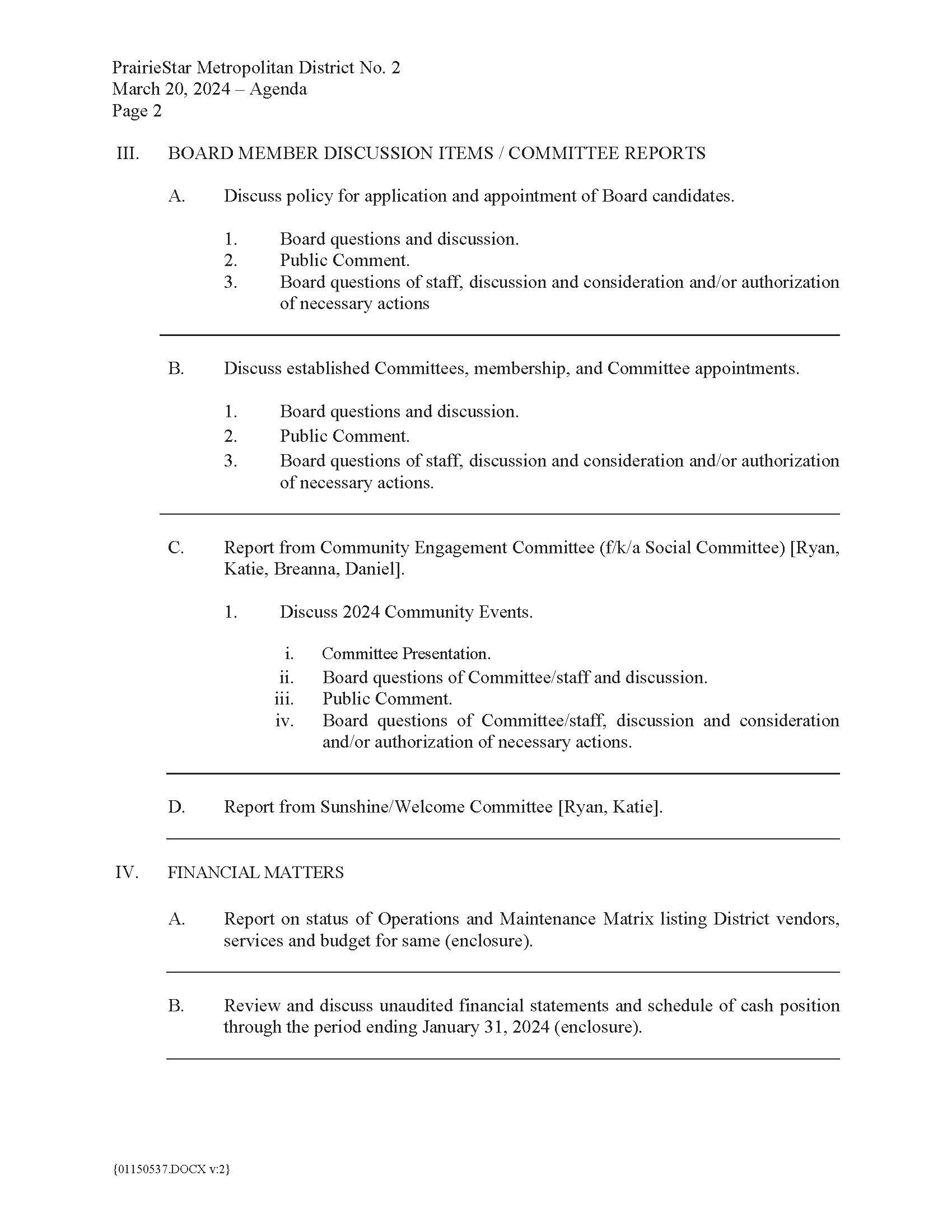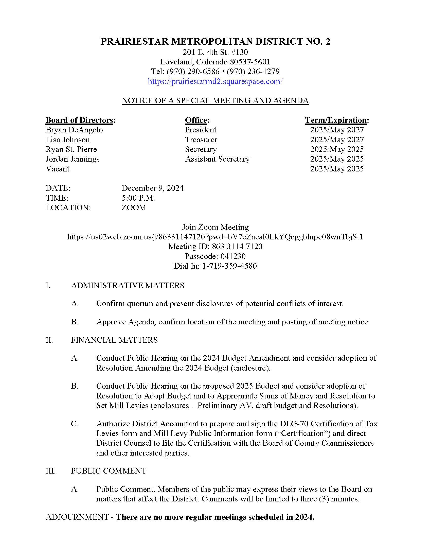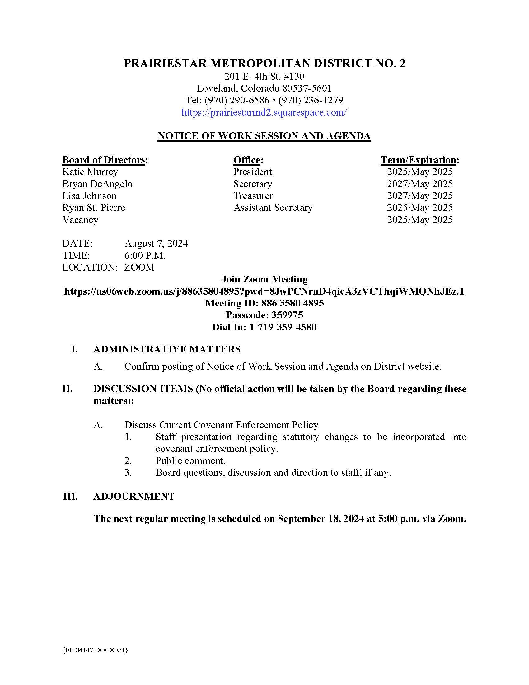 Sep242024Board MeetingThe Meeting Notice and Agenda will be posted no later than 24 hours in advance of the meeting.Agenda