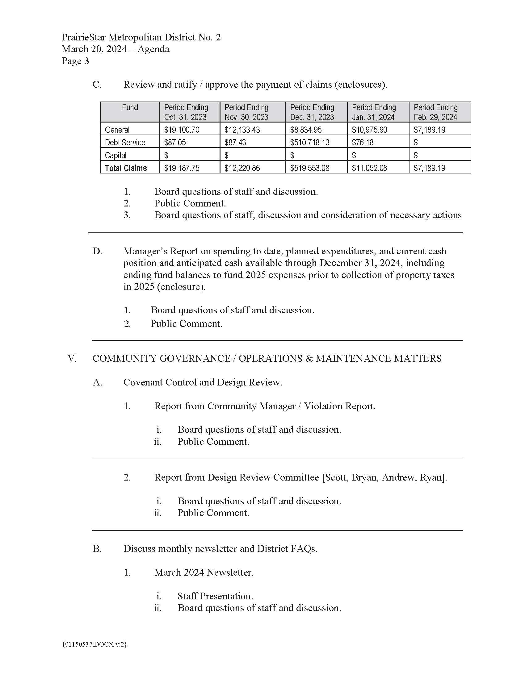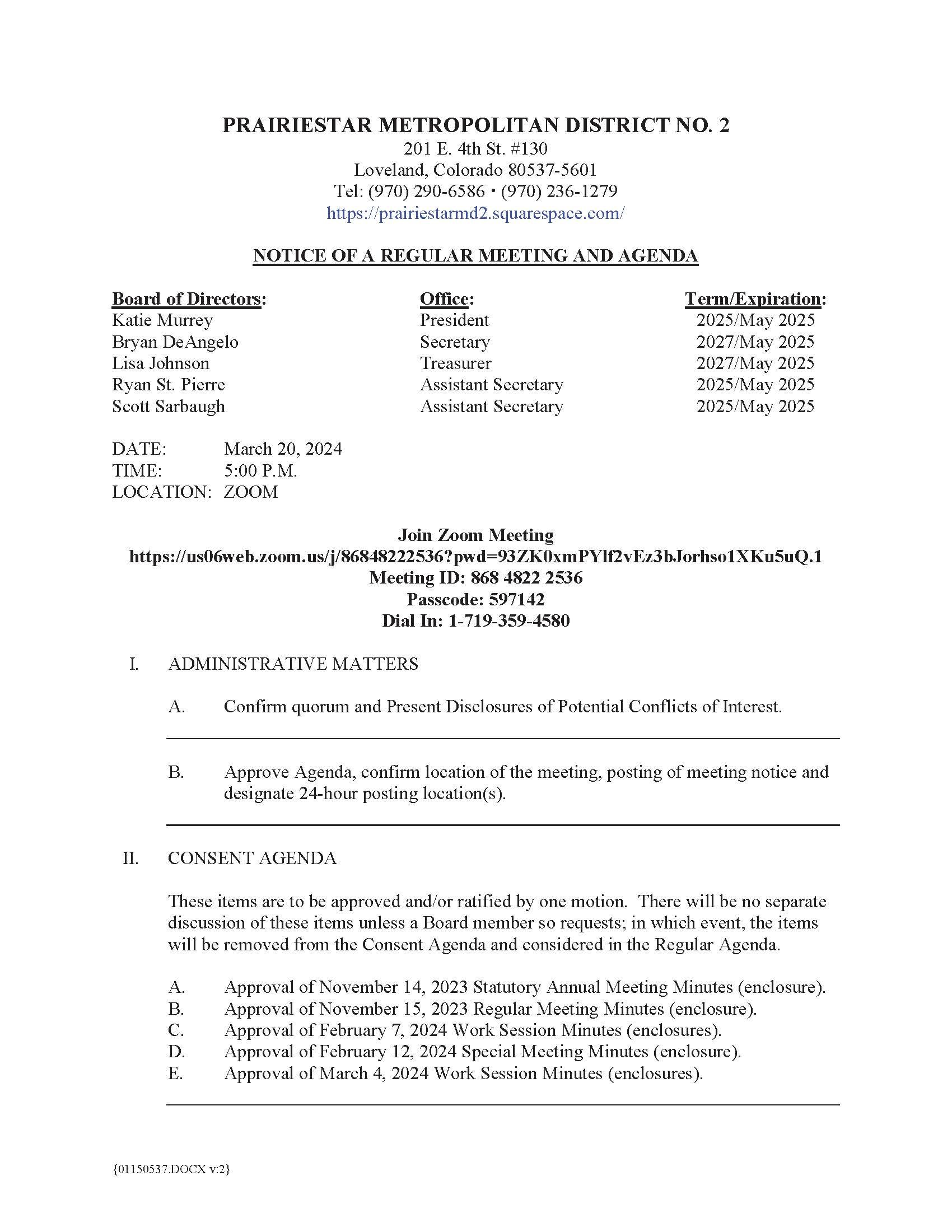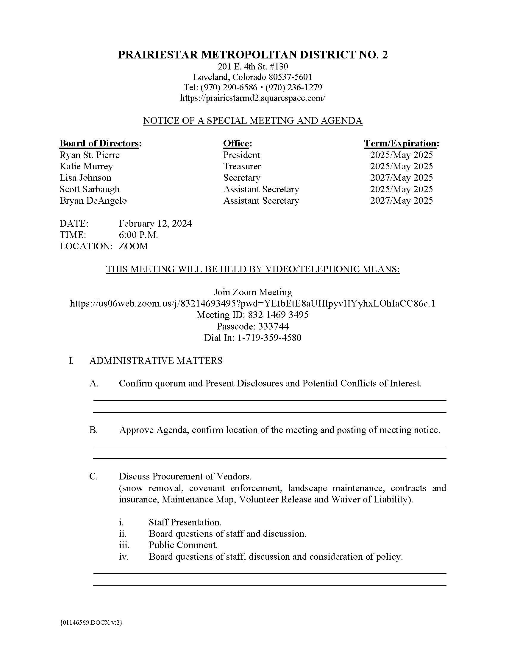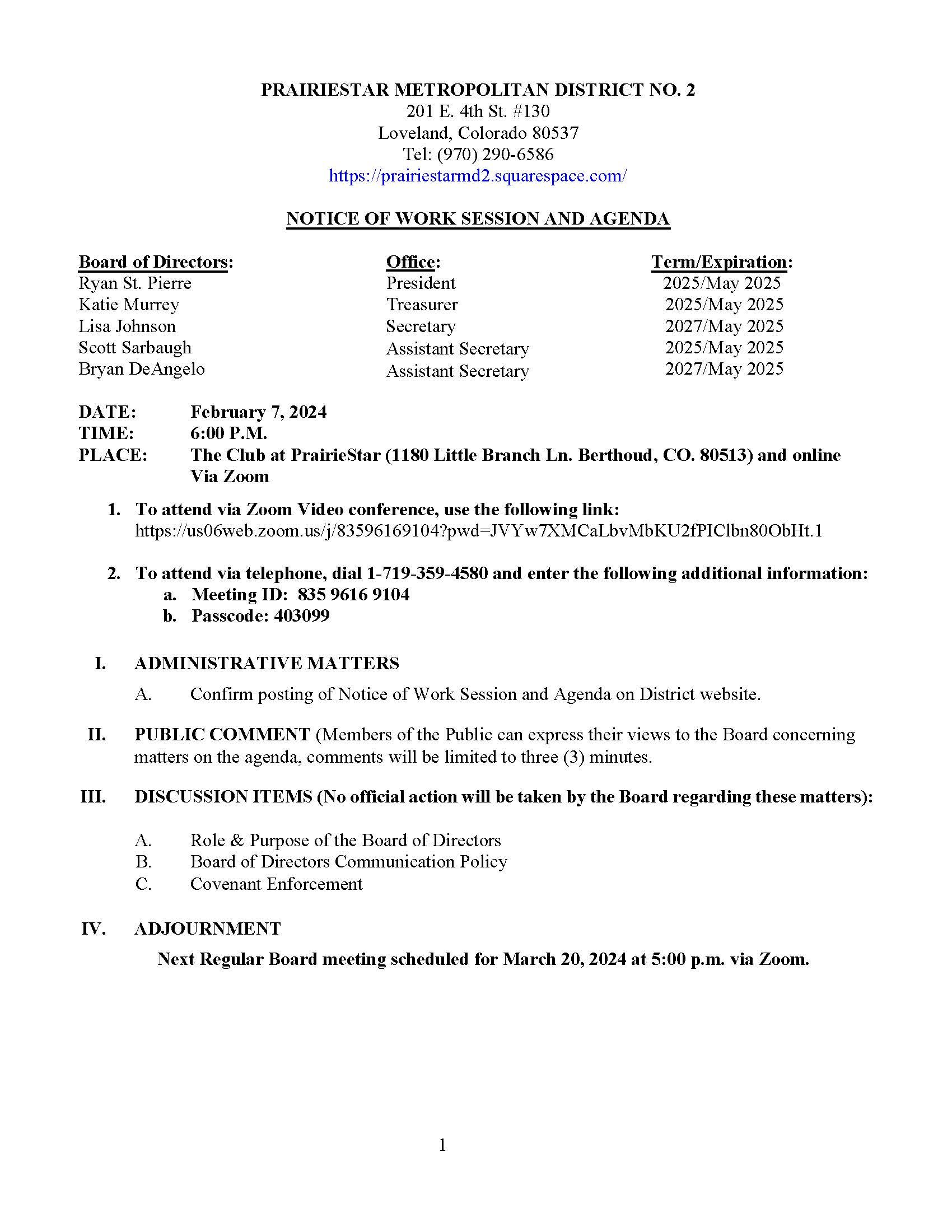 Sep242024Board MeetingThe Meeting Notice and Agenda will be posted no later than 24 hours in advance of the meeting.Agenda